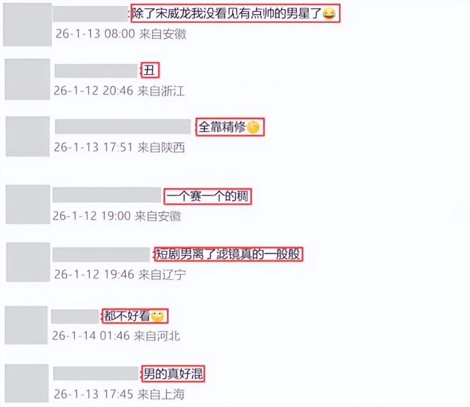 看完这一幕的网友也丝毫没有嘴下留情,纷纷吐槽“除了宋威龙没看见有点帅的男星”。