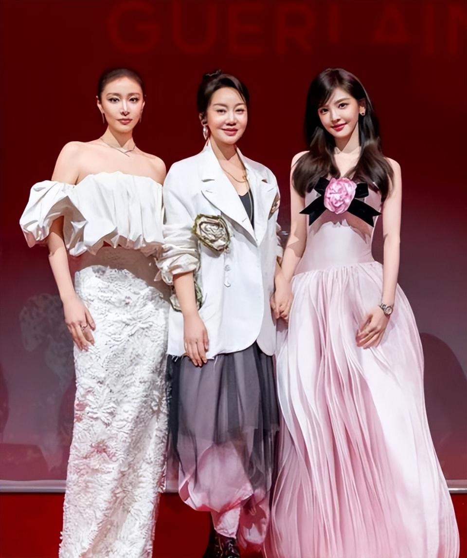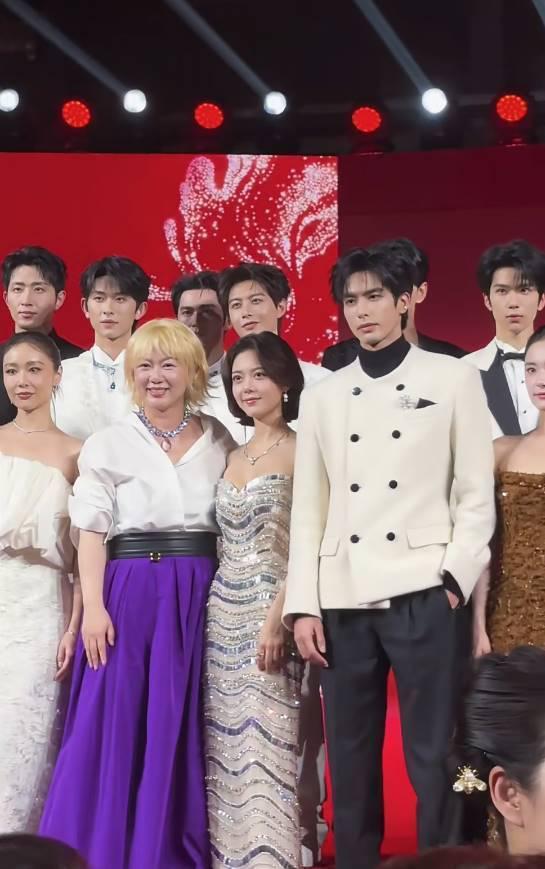 白色西装搭配粉灰渐变的长裙,盘发的造型优雅温婉,妥妥的气质美人,随着年龄增加更多了几分韵味。