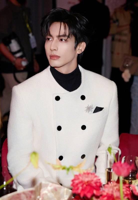 小香风的西装凸显了柔和的气质,不需要繁复的修饰,依旧矜贵,更像是“白马王子”。