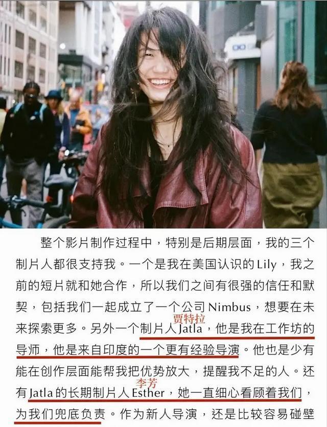 她在美国与Lily合作了短片,制片人Jatla是她工作坊的导师,Jatla的制片人Esther是中国李芳。